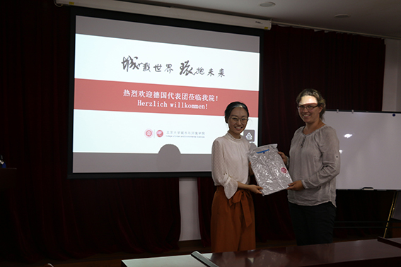 9月17日上午,受共青團(tuán)中央、全國(guó)青聯(lián)之邀,德國(guó)青年工作者代表團(tuán)一行六人訪(fǎng)問(wèn)北京大學(xué)城市與環(huán)境學(xué)院,團(tuán)員分別來(lái)自德國(guó)國(guó)際青年交流專(zhuān)業(yè)服務(wù)機(jī)構(gòu)、柏林利息滕貝格區(qū)青年移民服務(wù)中心、烏盆塔爾市德俄文化中心、柏林青少年共同促進(jìn)協(xié)會(huì)、哈姆市青年局青年活動(dòng)中心及柏林-勃蘭登堡地區(qū)青年旅舍聯(lián)合會(huì)環(huán)保旅舍,隨行的還有中國(guó)國(guó)際青年交流中心文體事業(yè)部副部長(zhǎng)許川。學(xué)院副院長(zhǎng)金鑫、團(tuán)委書(shū)記王宇凡、科研外事辦公室唐琳等出席了歡迎儀式并進(jìn)行會(huì)談交流。