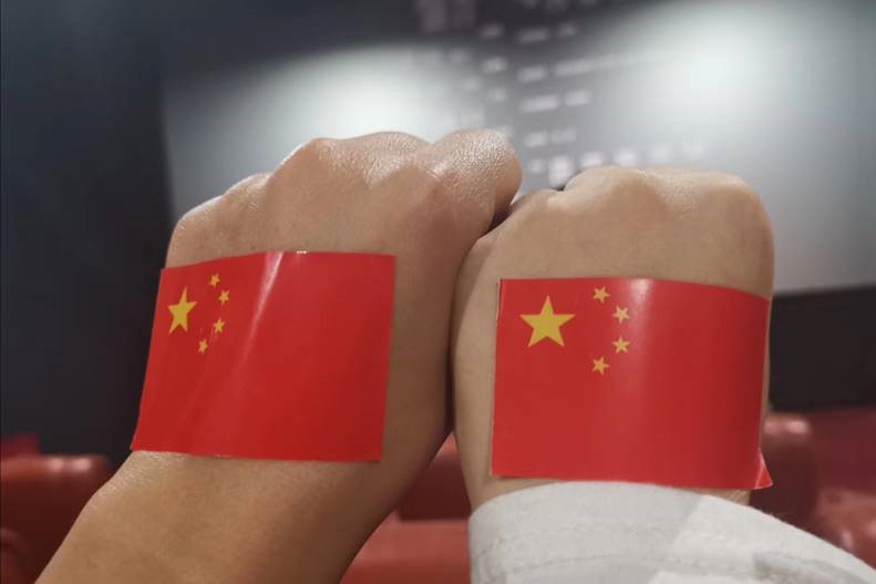 “我和我的祖國,一刻也不能分割,無論我走到哪里,都流出一首贊歌。”電影片尾響起,同學們坐在座位上,手舞五星紅旗,聆聽并跟唱片尾曲《我和我的祖國》,為祖國唱出心中最美的贊歌。最后大家進行了合影留念并暢談感想。2017級本科生易麗瑾表示,看完電影中新中國七十年來取得的成就她很有感觸,衷心祝愿祖國母親生日快樂。2019級本科生袁梅帥表示電影也十分激動人心,希望今后能更多地投入到黨團活動中來。通過本次活動,相信同學們能夠在今后的大學生活中銳意進取、自強不息、艱苦奮斗、頑強拼搏,真正把愛國之心化作報國之行。