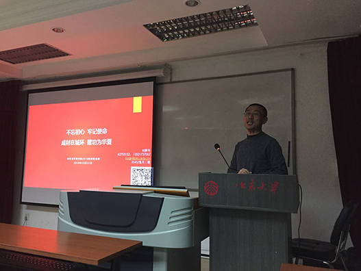 劉耕年老師的知識講座以“成材在城環(huán),建功為華夏”為主題,意在勉勵同學(xué)們,尤其是初入北京大學(xué)的同學(xué)們好好學(xué)習(xí),積極奮斗,為黨和國家的事業(yè)貢獻(xiàn)自己的力量。隨后,劉耕年從習(xí)近平總書記在2018年5月2日考察北京大學(xué)過程中發(fā)表的重要講話開始,強(qiáng)調(diào)了“立鴻鵠志,做奮斗者”對于北大青年學(xué)子的重要性和必要性。他希望,各位同學(xué)作為新時(shí)期的積極分子,能夠積極、認(rèn)真地參與黨課的學(xué)習(xí)和專業(yè)課程的學(xué)習(xí),在建立完善的知識體系、提升認(rèn)識水平的同時(shí)樹立起堅(jiān)強(qiáng)的理想信仰,能夠扎根中國大地,面向世界、面向未來。