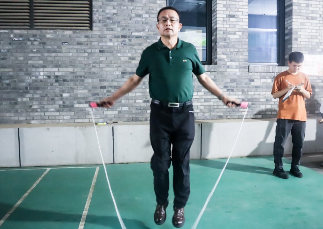 完成答題挑戰(zhàn)后,老師們興沖沖地來到“乘師風(fēng),勇破浪”運(yùn)動(dòng)挑戰(zhàn)區(qū)域。該挑戰(zhàn)共有五個(gè)項(xiàng)目:夾玻璃球挑戰(zhàn)、毽子挑戰(zhàn)、呼啦圈挑戰(zhàn)、跳繩挑戰(zhàn)、墊排球挑戰(zhàn)。大家熱情高漲地投入了各自的賽場,賽前熱身,互相指導(dǎo),一派活力四射的景象。彼此的眼里都閃著不服輸?shù)墓猓谶\(yùn)動(dòng)中全力以赴挑戰(zhàn)自我,無不大汗淋漓,喜笑顏開。