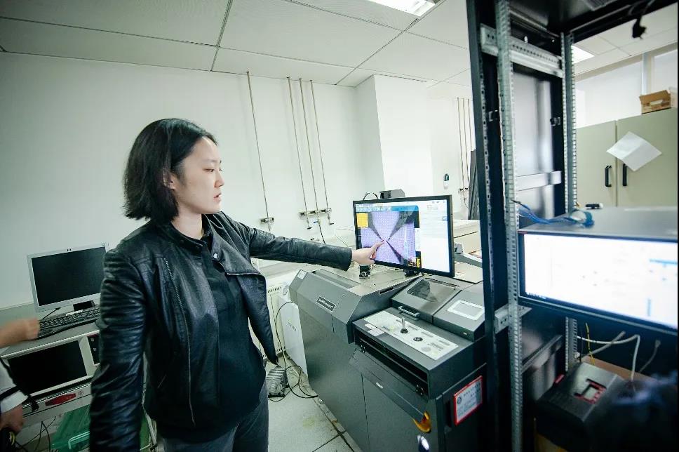 硅晶圓上蝕刻出來(lái)的觸點(diǎn)和線路,在顯微鏡下如同城市的鳥瞰圖。身穿皮衣和牛仔褲的黃芊芊研究員,和兩位學(xué)生一起站在測(cè)試臺(tái)前。如果不事先介紹,你不一定能一眼認(rèn)出誰(shuí)是導(dǎo)師。他們將晶圓上需要測(cè)試的區(qū)域停在顯微鏡的下方,操縱探針輕輕抵住觸點(diǎn),開始對(duì)晶體管進(jìn)行加電測(cè)試。半導(dǎo)體參數(shù)分析儀的顯示屏上很快出現(xiàn)了一條漂亮的電流曲線,說明測(cè)試對(duì)象的性能良好。