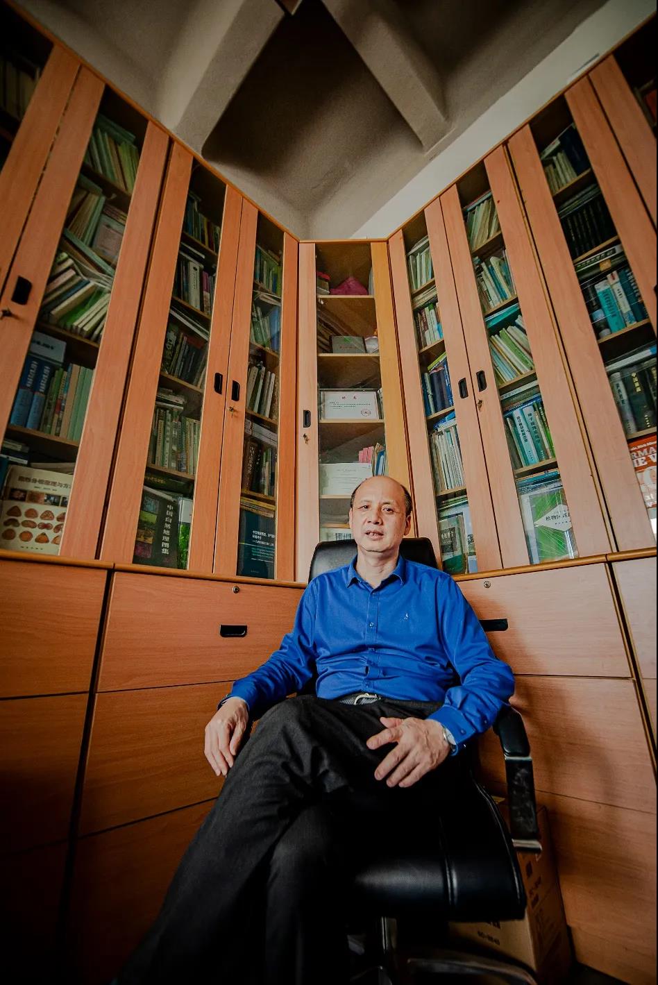 推門而入,里面其實(shí)別有洞天。這個(gè)面積不大,層高卻引人注目的房間,既是實(shí)驗(yàn)室又是辦公室和書房。一座高大的轉(zhuǎn)角書柜直通到天花板,覆蓋了房間大約三分之一的墻壁。它由教授親自設(shè)計(jì),以便最大限度地利用房間的高度,容納他珍貴的藏書。在書柜正中偏下的“黃金分割點(diǎn)”,安放著他多年前結(jié)束“洪堡學(xué)者”研究后由德國(guó)洪堡基金會(huì)頒發(fā)的證書,上面殷紅的封泥依舊嶄新。在謝世100多年之后,亞歷山大·馮·洪堡這位生物地理學(xué)鼻祖的精神,仿佛仍然盤桓在萬(wàn)里之外北京大學(xué)的這間斗室里——只有實(shí)地考察,親手實(shí)驗(yàn),掌握第一手的數(shù)據(jù),才有可能完成開創(chuàng)性的研究。